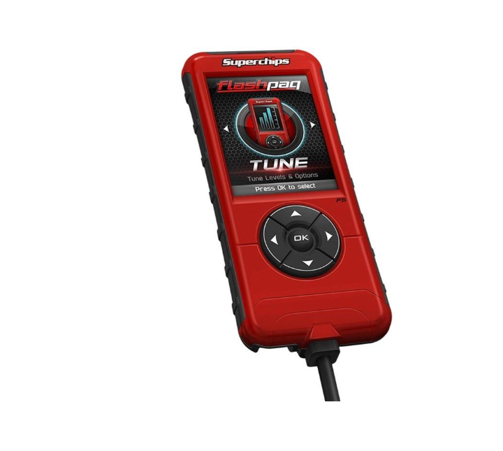 Superchips Flashpaq F5 Pro tuners put your vehicle’s tune in your hands. These handheld devices read stock vehicle files and load custom-tuned files built through HP Tuners custom tuning software (there are no pre-loaded tunes).